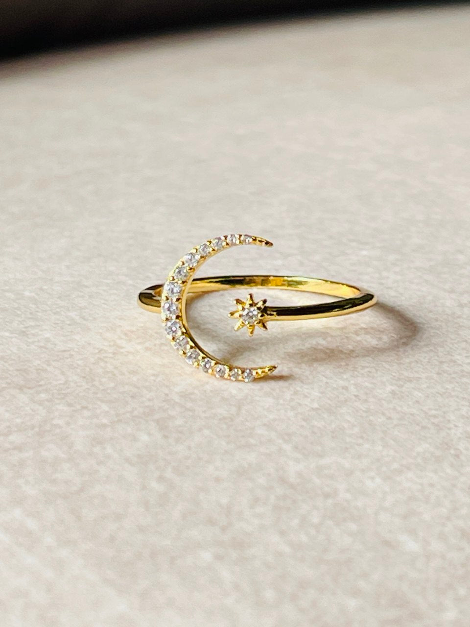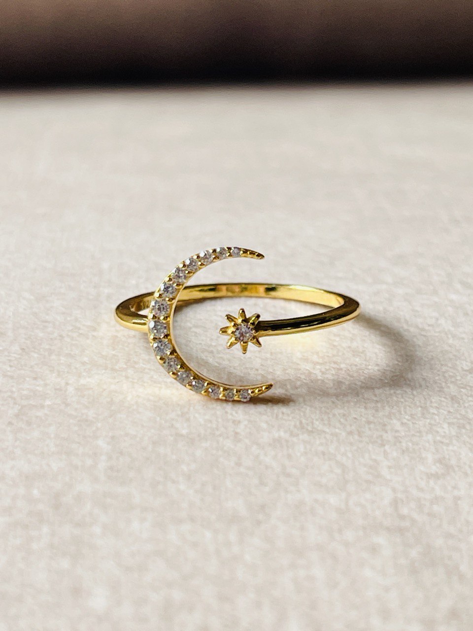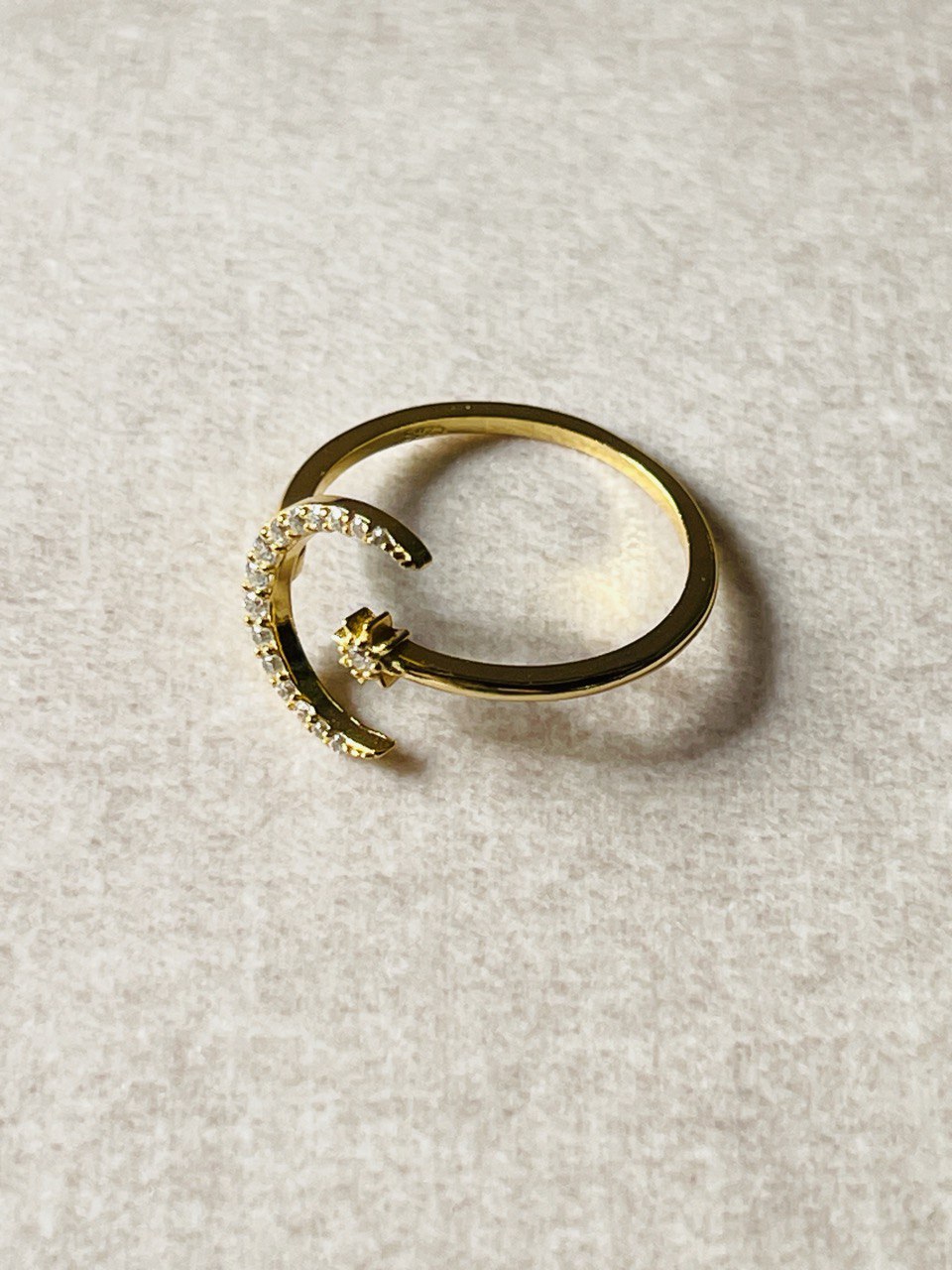 Made with 925 Sterling Silver, and gold-plated. Stones are Cubic Zirconia. This ring is adjustable.