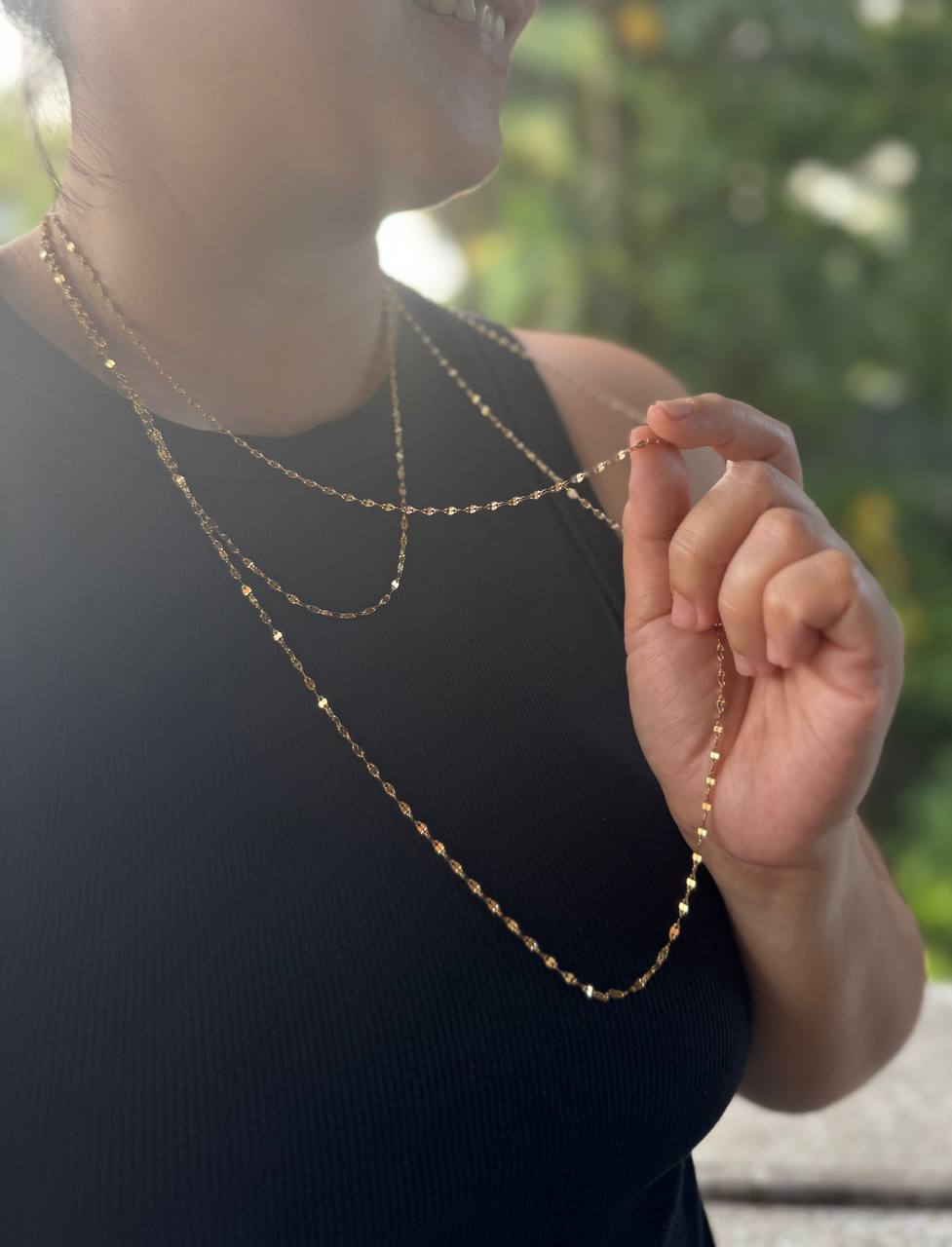Titan is a stainless steel long necklace. Multiple ways to wear. Gold-plated.